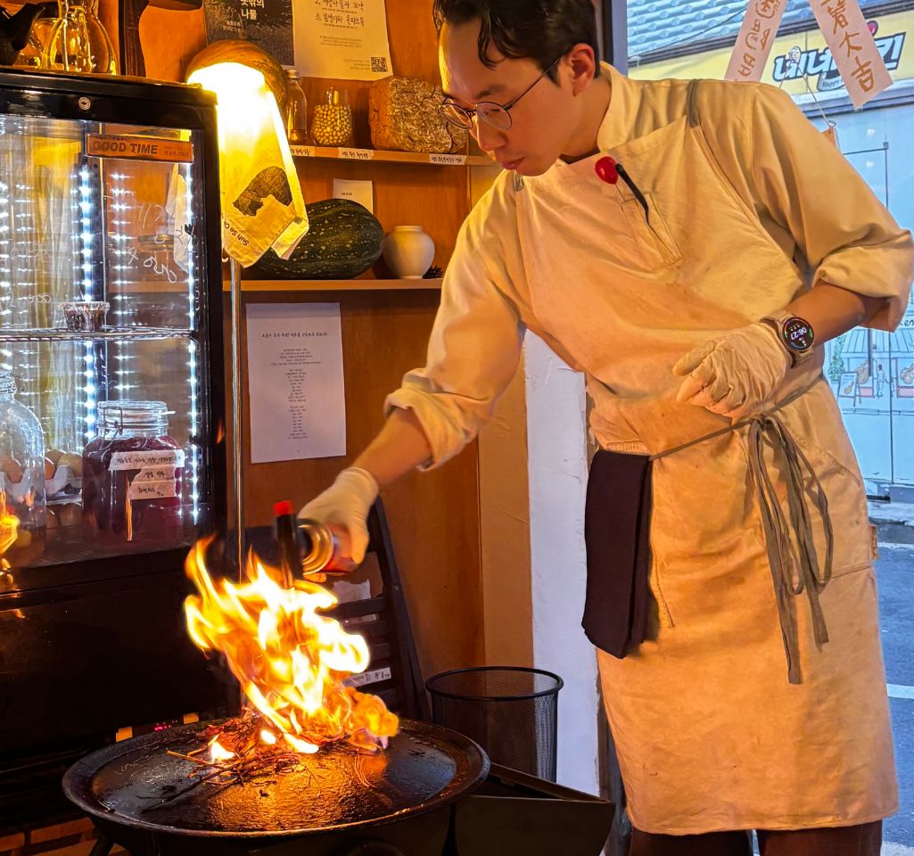 발효와 시간 : 식혜, 꿀, 어육 간장, 꽃게 김치 등 한국의 전통 발효 기법을 서양의 터치(압생트, 가스파초)와 결합하여 직관적이면서도 복합적인 감칠맛을 끌어냅니다.