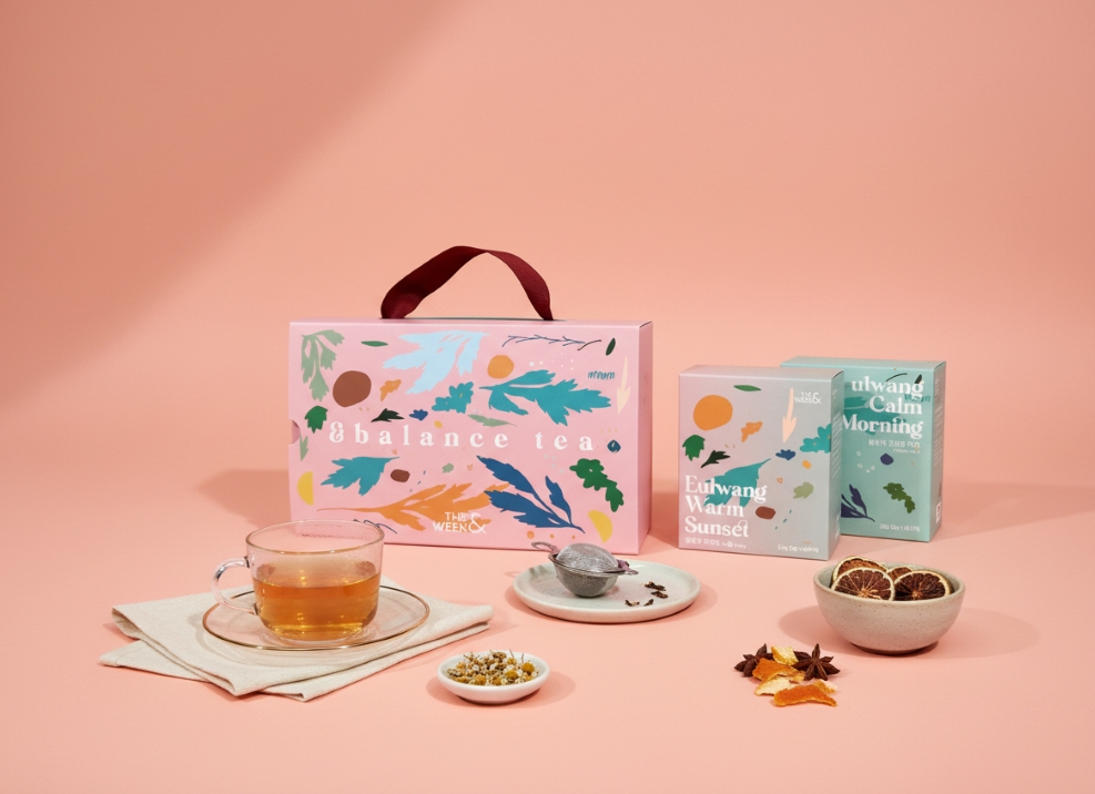 을왕의 고요한 아침과 따뜻한 노을에서 영감을 받은 더위크앤의 티 컬렉션을 만나보세요
